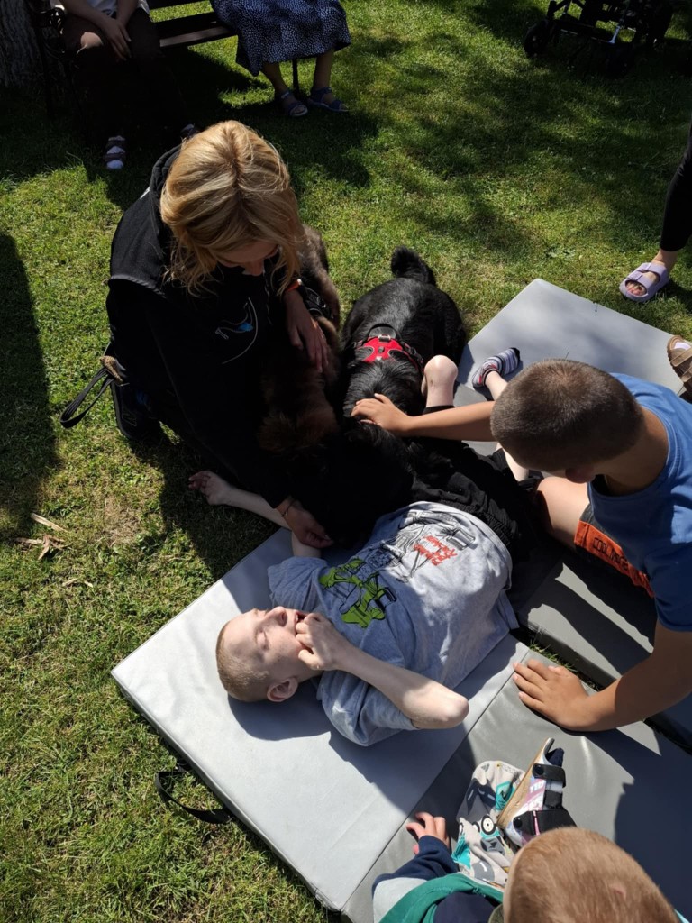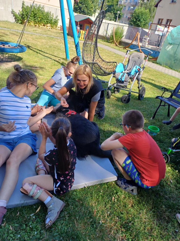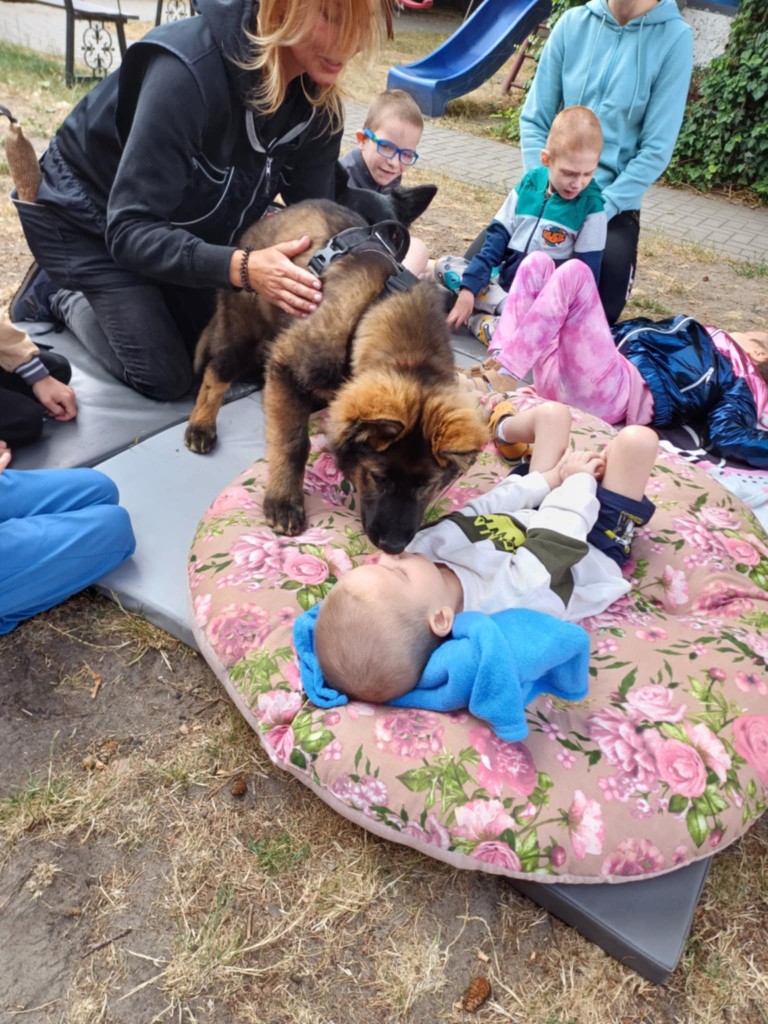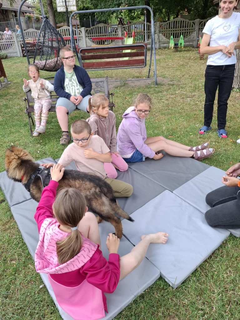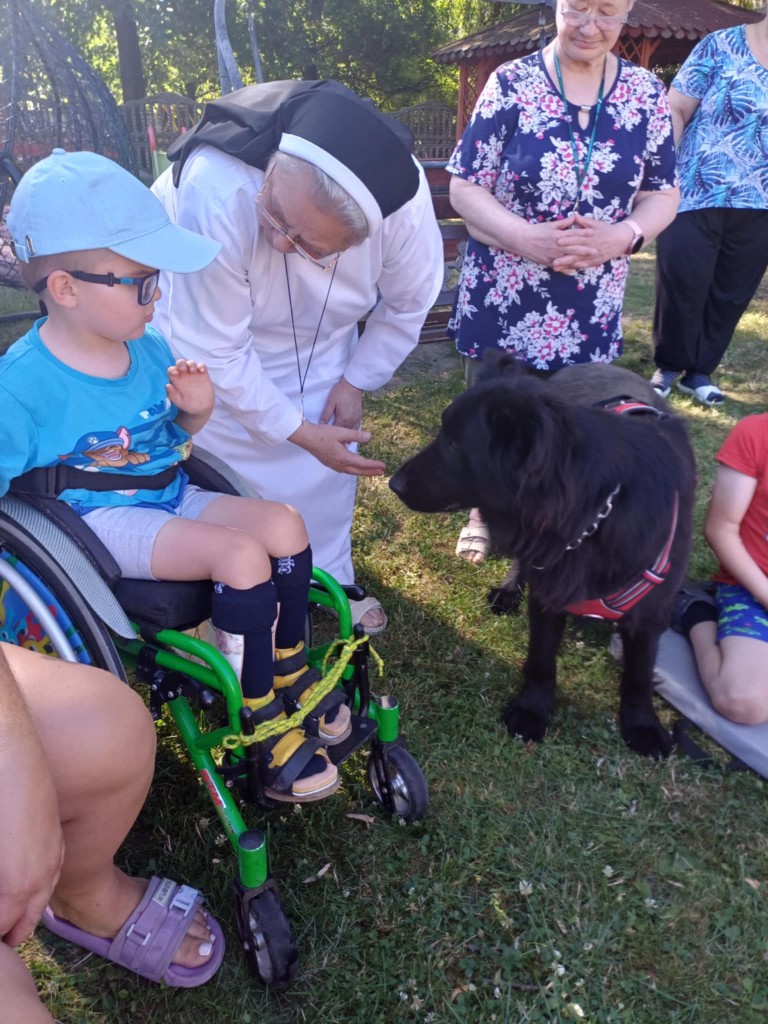 Podczas wakacji nasi Mieszkańcy uczestniczyli w czterech zajęciach z dogoterapii. Były one organizowane przez stowarzyszenie im. Siostry M. Iwony Król w ramach realizacji projektu „Chcieć znaczy móc” dofinansowanego przez Urząd Miasta i Gminy Wschowa. Zajęcia prowadzili pracownicy Firmy Joy z Siedlnicy.