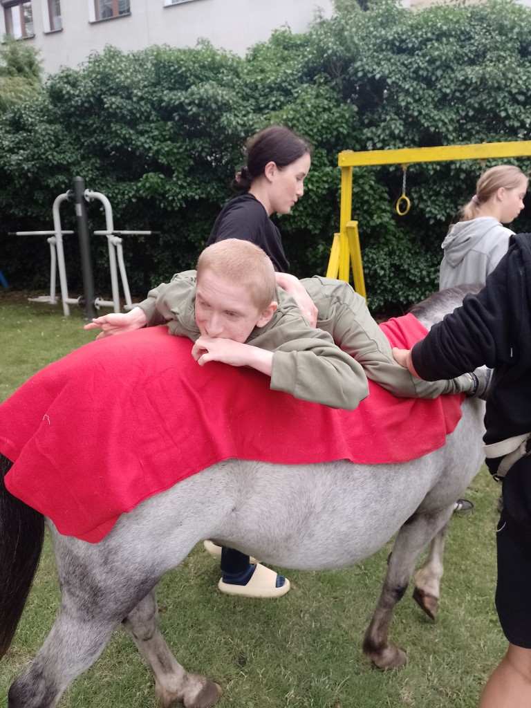 Podczas wakacji nasi Mieszkańcy uczestniczyli w sześciu zajęciach z hipoterapii. Były one organizowane przez Stowarzyszenie im. Siostry M. Iwony Król w ramach realizacji projektu „Chcieć znaczy móc” dofinansowanego przez Urząd Miasta i Gminy Wschowa. Zajęcia były prowadzone we współpracy z Gospodarstwem Agroturystycznym „Tradycja” w Siedlnicy.
